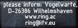 Aber man kann nur generell dazu auffordern, mit einem Teleobjektiv zu versuchen, Sichtungen von beringten Vögeln der Vogelwarte zu melden. (Adresse siehe unteres Foto dieses Artikels.)
