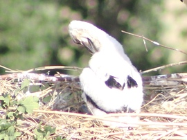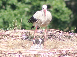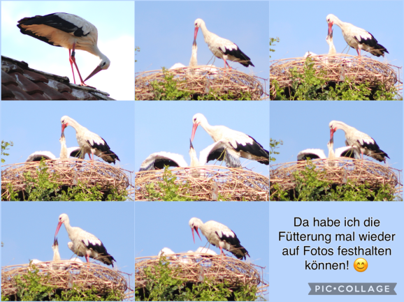 Unter dem Nest haben wir regelmäßig nachgesehen und auch mit unserem Hund gesucht, aber nichts entdeckt. Jetzt heißt es Daumen drücken, dass dies eine Storchenküken groß wird.