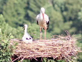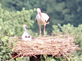 Natürlich brauchen unsere Störche auch noch Namen. Als allererstes wurden die Störche vorgestern von unseren lieben Wohnmobil-Gästen aus Gummersbach entdeckt. Sie werden unsere „Storchenpaten“ und nach ihnen werden die Störche benannt: Gerda und Dietmar.