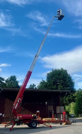 Wir befürchten schon das Scheitern unseres Vorhabens, aber ein Anruf bei der Fa. Friedrich Stelter in Müden und die Schilderung unseres Problems reicht aus, und uns wird spontan ihre Hubarbeitsbühne für den Nestaufbau gratis zur Verfügung gestellt. Es dauert nur eine halbe Stunde, da steht Friedel Stelter mit seinem LKW mit Hubarbeitsbühne bereit. Super, es kann losgehen! Vielen herzlichen Dank an Fa. Stelter!