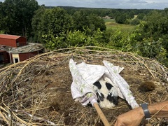 13.06.2025: Jens kann mit Hilfe der Hubarbeitsbühne Fotos aus dem Horst machen und 2 putzmuntere Küken sind zu sehen! Wir freuen uns sooo doll!