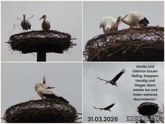 Sicherlich muss Gerda sich erstmal stärken, bevor sie Eier legt und die beiden Störche mit dem Brüten beginnen.
